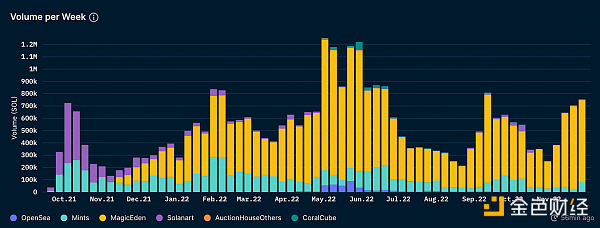 Solana 區塊鏈最近的黑客馬拉松活動有 750 份提交,而以 SOL 計價的 NFT 數量增長了 102% M/M。