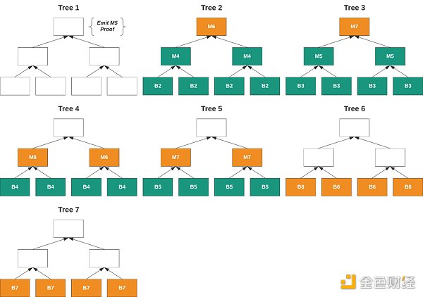 其中一種方案是要求每個插槽需要同時與幾個分支進行合并。另一種方案是將每個分支交替嘗試和其余分支合并,從而減少證明工作量。當然這也是一個開放性問題,可能未來有更好的解決方案。
