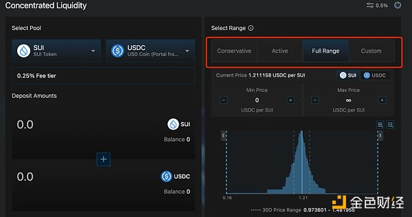 集中流動性:作為一個交易平臺,Cetus 有著類似 Uniswap V3 的集中流動性的特點,用戶在提供流動性的時候可以自選區間來使得其資金利用效率最大化,同時 Cetus 上也給用戶提供了四種選擇: