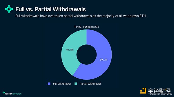 ?全額提取已經超過部分提取,現在占所有提取 ETH 的 59.2% ,而部分提取占 40.8% 。