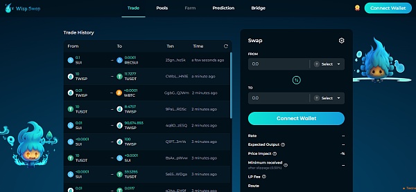Wisp Swap 目前還未上線主網,推出了現貨交易和預測市場兩個功能,根據白皮書,未來還會推出借貸、Launchpad、質押挖礦等功能。