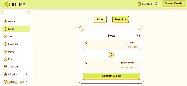 雖然 NFT-Fi、代幣交換、launchpad 功能已發布,但沒有可供交易的流動性。