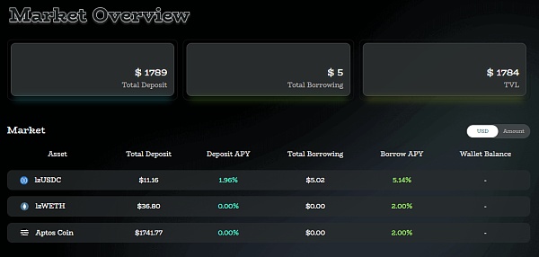 建立在 Aptos 和 Sui 上的借貸市場,但還未在 Sui 測試網上線。