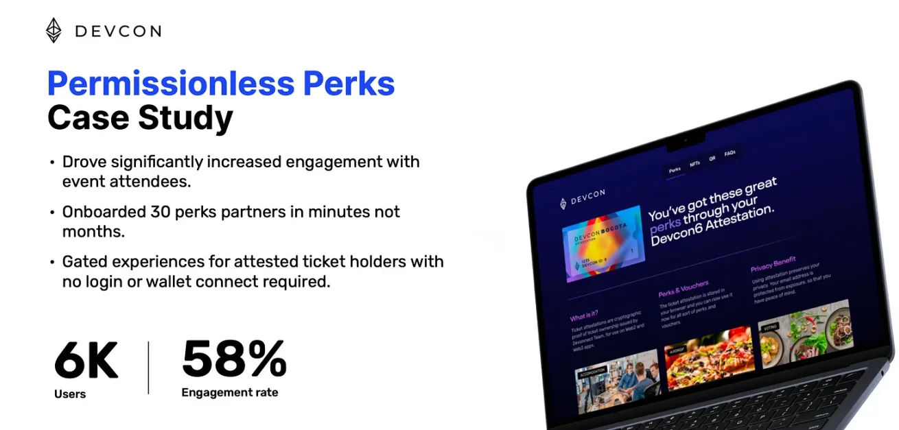 參考上一次波哥大 Devcon 的經驗,Permission Perks 使得參與互動率為 58%,兩倍于行業平均水平。