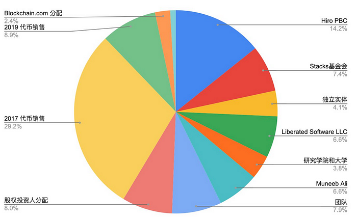 挖礦獎勵的分配為前4年1000 STX/區塊, 后續4年500 STX/區塊, 此后4年250 STX/區塊,然后是永久性125 STX/區塊。分配給創始人和員工的STX遵循3年解鎖。
