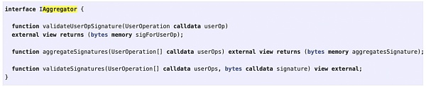 aggregateSignatures:輸入參數為一個UserOperations數組,并使用特定的簽名算法輸出一個聚合簽名