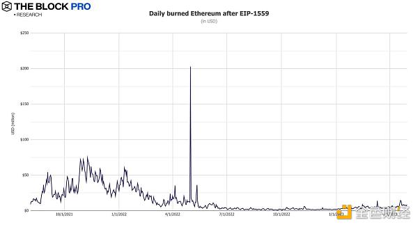 4、四月以太坊網絡共銷毀了108,140枚ETH,價值相當于2.077億美元。數據顯示,以太坊在整個四月期間都處于通縮狀態,此外自2021年8月上旬實施EIP-1559以來,以太坊總計銷毀了約315萬枚ETH,價值達到93.8億美元。