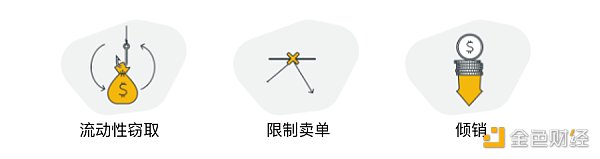 Rug pull主要包含3中類型,:流動性竊取, 限價賣單和傾銷。