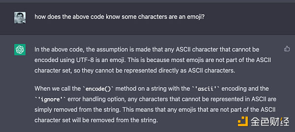 簡而言之,LLM 用了一個很巧妙的技巧。它不是靠窮盡所有的 ASCII 表情符號來檢查文本是否存在這些字符,而是選擇用字符編碼來區分表情符號與非表情符號。這個做法是在是太聰明了,還有,你可以要求 LLM 解釋它是怎么做一件事的,這種自我參照的解釋能力則是改變了軟件這場游戲的另一個原因。