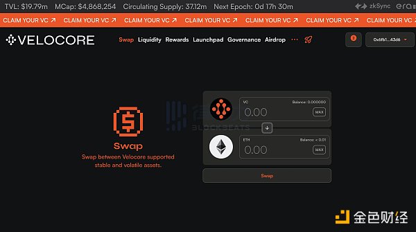 除了 SyncSwap 外,Velocore 是 zkSync Era 排名名第二的 DEX,也正是我們在前文提到的因空投規則是線性解鎖而價格大跌,團隊開了新號準備開始其他 IC0 的項目方。