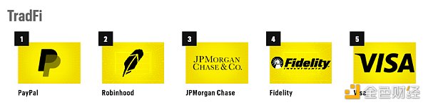 TradFi:該類別將表彰傳統金融領域的公司,包括銀行、交易所和金融科技公司,這些公司已在加密貨幣和區塊鏈領域取得重大進展。信托和投資公司不包括在內。選取標準包括加密相關產品和投資的數量以及行業聲譽。