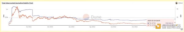 還有 25% 未知,其中一部分是被用戶被動持有的,未知部分的比例在上升,尤其是 USDC 脫錨之后,LUSD 的持有量上升。USDC 脫錨后,市場想要尋找一個去中心化程度較高,儲備資產充足的穩定幣,而 LUSD 是目前比較符合市場需求的項目。