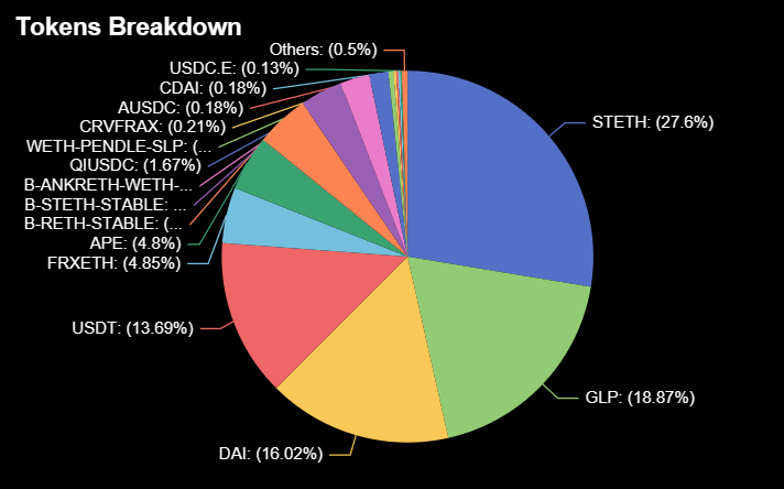自 12 月以來,Pendle 的 TVL 已經經歷了 7 倍的飆升,越來越多的用戶發現了它的潛力。根據 DefiLlama 的令牌 TVL 細分,其中超過三分之一可歸因于 LSD,包括 stETH 和 frxETH。隨著 Pendle 最新整合 sfrxETH,我們可能會看到 LSD 在 Pendle 的 TVL 中的占比增加。