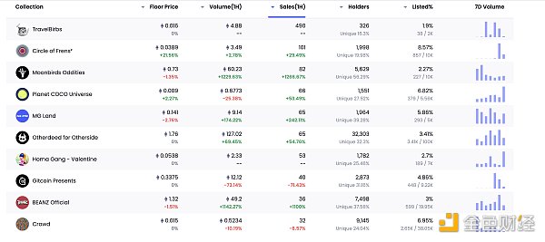 24小時內銷售前十的NFT 數據來源:NFTGO