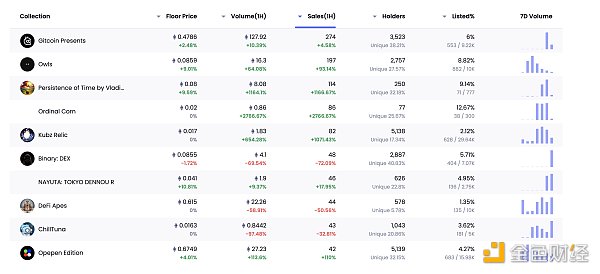 24小時內銷售前十的NFT 數據來源:NFTGO