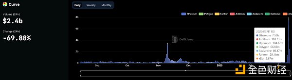 其次是Uniswap,Uniswap也是當前加密市場中交易量最大的DEX之一,USDC脫錨后的24小時內交易額飆升至34.5億美元,創下過去四個月以來的最佳表現。截至本文撰寫時,Uniswap用戶支付的交易費用也升至87.5億美元,觸及過去10個月以來高點。