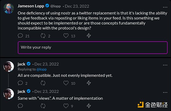 Nostr 實現了社交網絡從未支持過的功能:設身處地為他人著想的能力。想看看別人的信息究竟是什么樣子?只需用他們的公鑰設置一個只讀帳戶。如果這一功能足夠有趣,則 nostr 客戶端可以添加一個「以...方式查看信息」功能,該功能可以像用戶個人資料屏幕上的按鈕一樣簡單。