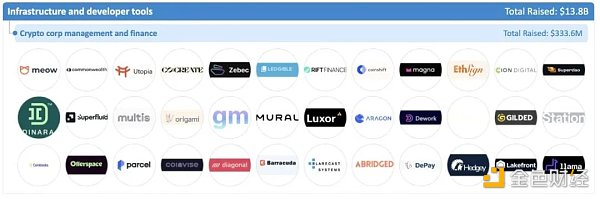 基礎設施和開發工具類產品為進一步建立繁榮的鏈上生態打下了基石,讓更多的Builder與Developer可以推進行業進步。該領域企業共計融資138億美元。