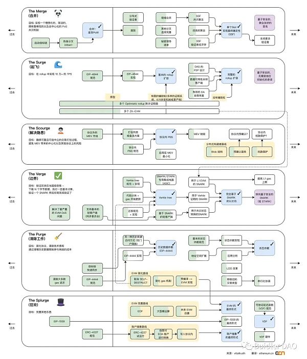 目前距離 EIP-4337 的落地還有很長的一段時間要走,許多理論上可以實現的技術往往在實踐中會困難重重遇到許多問題如:兼容問題,復雜的節點驗證過程,如何防止 Bundler 作惡、技術邏輯無法實現等等,要解決這些技術問題需要進行長時間的嘗試和討論,這也是為什么 EIP-4337 被放在了以太坊升級的第六個階段 Splurge(狂歡)中的原因。
