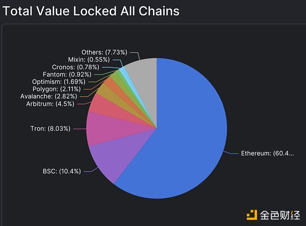 全鏈貨幣市場的本質就是整合不同鏈上的流動性,減少普通用戶的操作麻煩,提升資產的利用率。根據 Defillama 的數據,截止到藍狐筆記寫稿時以太坊 L1 的 TVL 大約在 60% 左右,剩余的分布在各種其他不同鏈上。這些鏈上的借貸都是獨立進行的,流動性是割裂的。