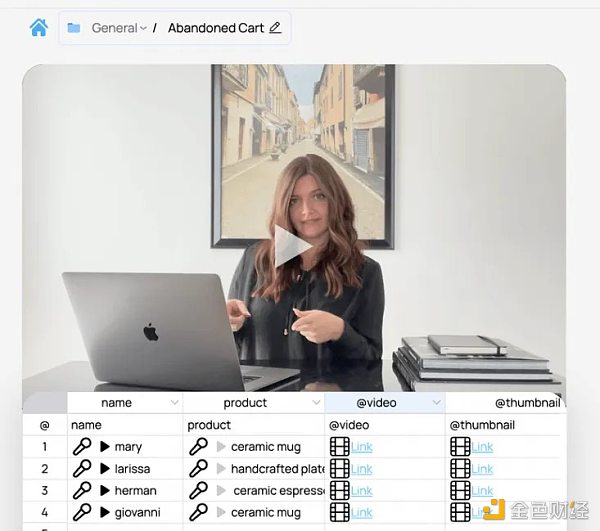 在視頻模板中,有兩個占位符“姓名”和“產品”。當這個模板視頻與數據庫相連接的時候,生成的視頻中就會包括與每個客戶的數據相對應的名字和產品。
