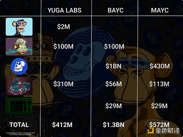 Yuga 生態系統價值 = Yuga Labs 股權價值 + Yuga NFT 和代幣的價值