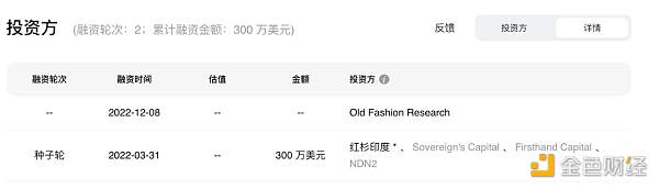 融資:累計融資 1 次,融資總金額為 200 萬美元,由 Animoca Brands 投資。