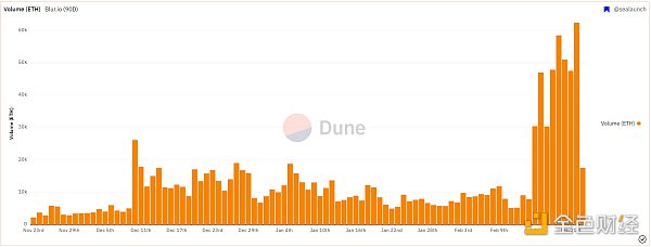 自從 2 月 14 日代幣上架和空投就位之后,Blur 市場上 NFT 交易量和賣方流動性急劇上升。在第一季發放 3.6 億枚 Blur 空投獎勵后,官方表示會在第二季度繼續發放 3 億枚 Blur 代幣空投。
