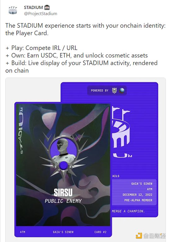 STADIUM 體驗從鏈上身份開始,它由玩家卡牌 NFT 代表,可定制,動態渲染,是 STADIUM 生態系統的入口。