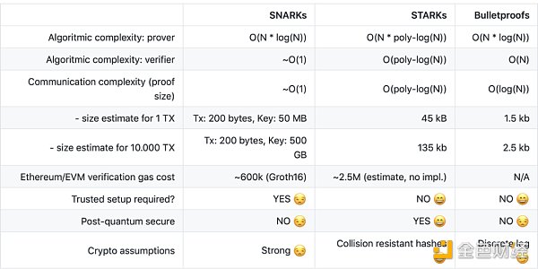 以上分類也不是絕對的,比如 Halo/Halo2 項目,它們在設計時也借鑒了很多 Plonk 的思路,另外,SNORKs 通常會被歸入到 SNARKs,因為它們都需要可信設置。
