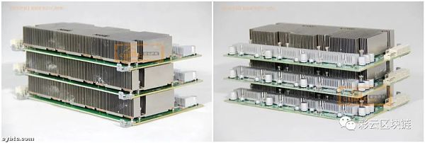 螞蟻礦機Z15_420K算力板板型與Z11一致,在芯片位置一面安裝有三片獨立的散熱片。