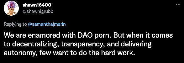 我在 Twitter 上詢問是否有人對 DAO 的看法發生變化。以下是我最喜歡的一些答案: