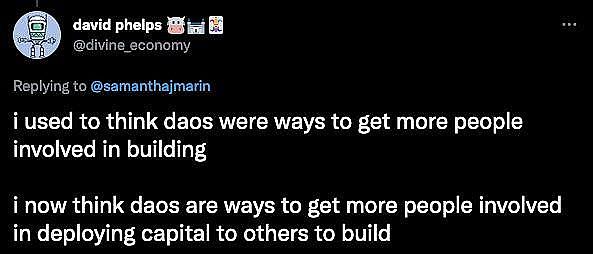 但我現在認為 DAO 是讓更多人參與部署資金給其他人建設的方式