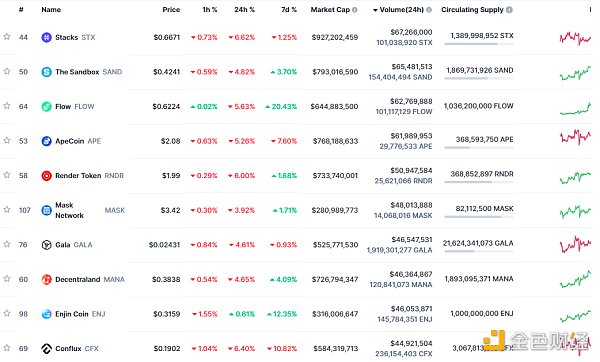 NFT總市值、市值排名前十項目 數據來源:Coinmarketcap