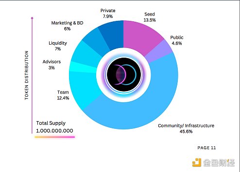 $ENTGL 是 Entangle 生態系統的主要代幣,用于 Gas 費用、運行 Keeper 預言機 、驗證交易等等。它的總供應量為 10 億,其中令人矚目的 45.6%用于社區/基礎設施。