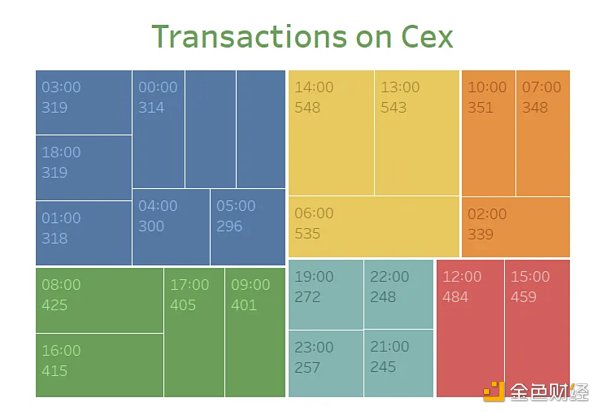 從cex可以看出,CEX上面最活躍的時間是UTC 14:00,13:00,06:00, 其次是12:00,15:00。 轉化成北京時間的話,主要是以半夜為主,說明cex上面的交易以美國時區的為主。