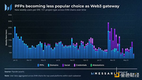 隨著PFP項目在吸引新用戶方面的下降,消費者應用程序出現了。他們提供分散的社交媒體、數字身份和基于區塊鏈的域名。這些應用程序提供了有意義的人際聯系、自我表達,并培養了社區意識。