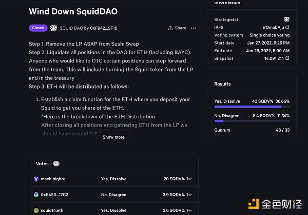 又一次,一個“匿名團隊”支持由于游戲 Squid DAO 的推出,這是一個 OHM/Nouns DAO 分支,于 2021 年 10 月出現。早期持有者中有 MachiBigBrother.eth。到 2022 年 1 月,該項目在 Machi 的建議下關閉了。