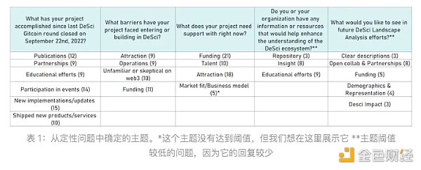 實現所有目標的項目需要資金才能達到新的水平。完成所有擬議目標的 6 個項目中有 4 個表示資金是他們唯一的需求,這表明投資者或資金來源在提升 DeSci 生態系統和推進科學方面的需求尚未得到滿足。