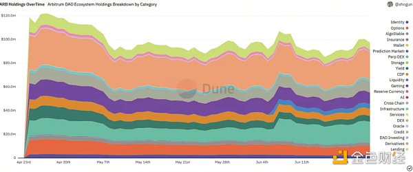 此外,我們的成員 Shogun 制作了一個 Dune 儀表板,除了用戶數量、交易數量和應計費用等一系列指標外,還提供所有協議的初始 ARB 分配和當前余額的概覽。