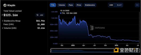 截至撰寫本文時,Klaytn 上有 34 個 DeFi 應用(DefiLlama 數據),總鎖定價值(TVL)為 1.23 億美元。這個數字還不錯,但實際上,韓國的 DeFi 采用率較低。