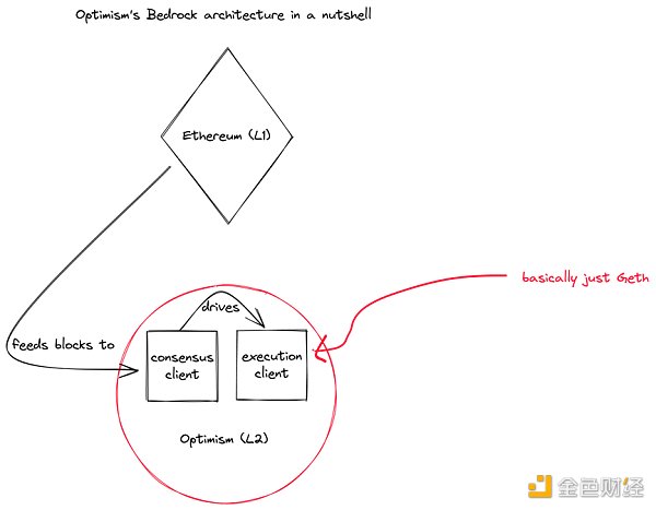 混合 ZK/Optimistic Rollup 以 Optimistic Rollup 的形式開始,這種 Rollup 與 Optimism 的 Bedrock 架構非常相似。Bedrock 旨在與以太坊(“EVM Equivalent”)達到最大程度的兼容,并通過運行幾乎與普通以太坊客戶端相同的執行客戶端來實現這一目標。Bedrock 使用以太坊即將出現的共識/執行客戶端分離模型,顯著降低了對 EVM 的差異(總是需要進行一些改變,但我們可以管理這一點)。在我寫這篇文章時,Bedrock Geth 的差異是一個+388 -30的提交。
