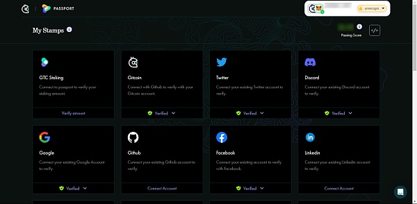 Gitcoin passport 整體操作比較簡單,打開他們的官網清楚地看到所有的任務。