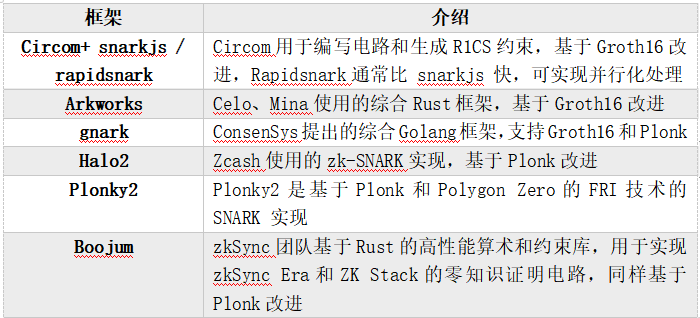 隨著零知識證明項目的激增,同樣基于SNARKs技術的項目區別主要在于證明系統(Proving Systems)的不同。依據證明系統的成熟度和開發人員的采用,Pantheon總結了以下最具代表性的框架: