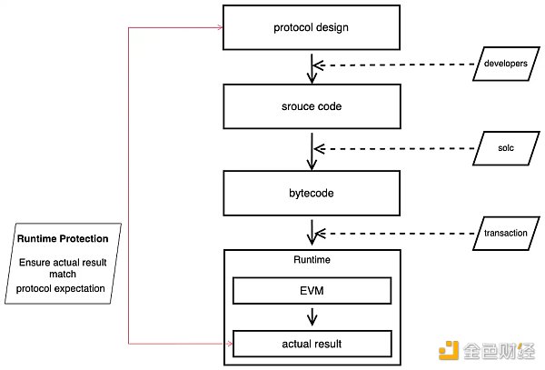 與現有的風險控制措施集中在協議源代碼層面并在運行之前生效不同,運行時保護涉及協議開發人員編寫運行時保護規則和操作,以處理運行時的未預料情況。 這有助于對運行時執行結果進行實時評估及應對。