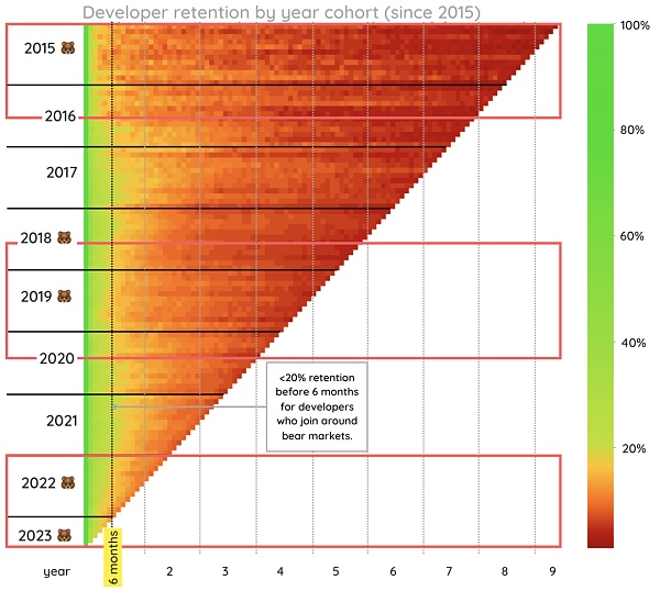 從歷史上看,熊市中的開發者保留率較低