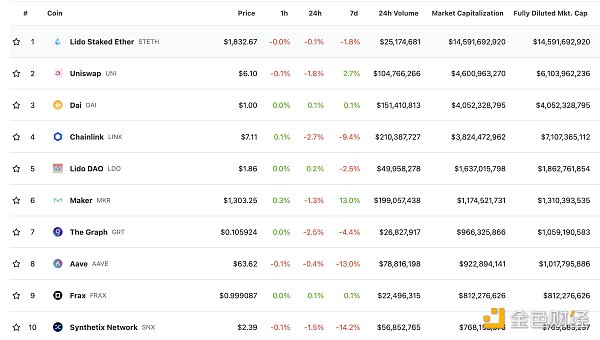 過去24小時去中心化交易所的交易量 數據來源:coingecko