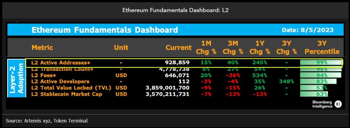 事實證明,以太坊去年向 L2 的遷移取得了巨大成功。在過去 12 個月中,已有數十萬新用戶加入 Web3,L2 活躍地址增加了 245%。