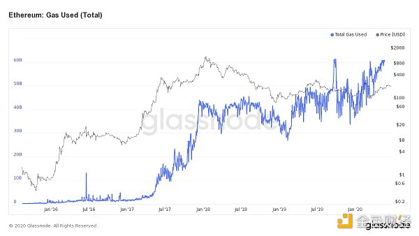 不過,近期以太坊的GAS的使用率已接近歷史最高點。大概率是由于DeFi活動的增加以及機構對ETH2.0越來越廣泛的興趣。