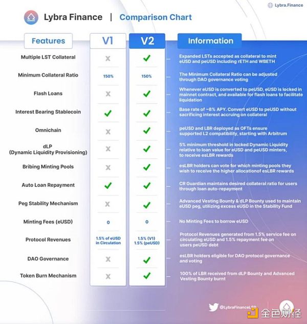 為了解決該問題及其他問題,Lybra v2推出了一個新的穩定幣——peUSD。升級內容還包括全鏈功能,可以使用各種抵押品進行鑄造,并且更容易與DeFi協議集成。v2目前在Arbitrum測試網上運行。